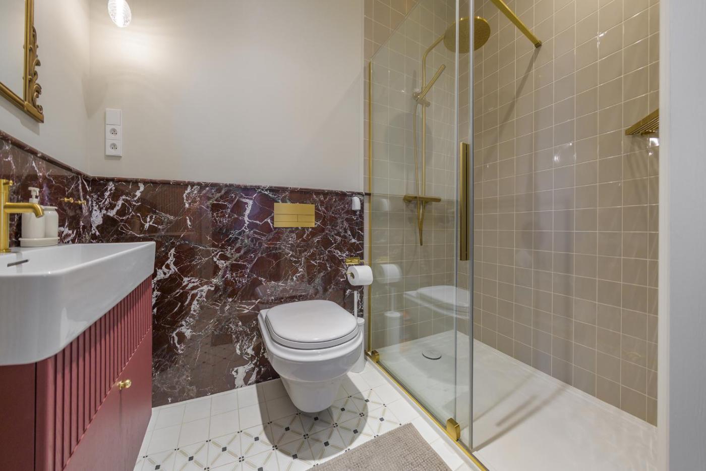 Studio typu Deluxe z łóżkiem typu king-size. The studio provides air conditioning, a washing machine, as well as a private bathroom featuring a shower and a hairdryer. Meals can be prepared in the kitchenette, which is equipped with a stovetop, a refrigerator, a dishwasher and kitchenware. The studio features a coffee machine, a dining area, a wardrobe, heating and a flat-screen TV. The unit offers 1 bed. Studio - 2 osobowy. Powierzchnia pokoju ok.: 39 mkw.