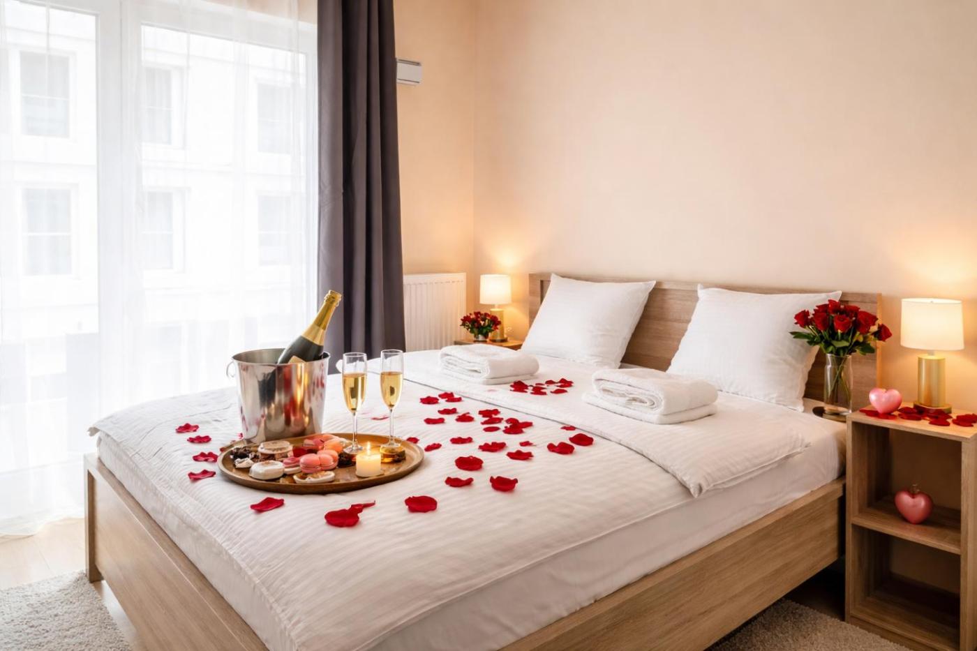 Apartament z 1 sypialnią i balkonem. Apartament ten mieści sypialnię, łazienkę oraz aneks kuchenny. W aneksie kuchennym można przygotowywać posiłki i przechowywać żywność. Apartament ten wyposażony jest w telewizor z płaskim ekranem. W tej opcji zakwaterowania zapewniono 2 łóżka. Apartament - 4 osobowy. Powierzchnia pokoju ok.: 45 mkw. ;